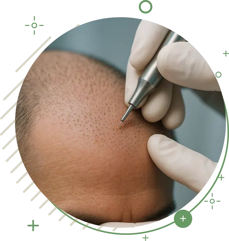 FUE – punktuelle Entnahme einzelner Follikeleinheiten, praktisch ohne sichtbare Narben.