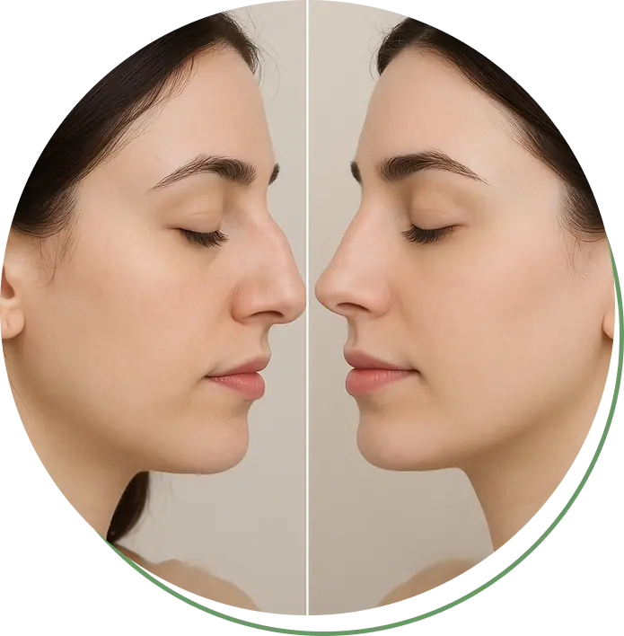 Sanfte Modellierung Ihrer Nase ohne Skalpell: Dr. Moheb formt Nasenrücken, -spitze und Konturen präzise mit hochwertigen Hyaluron-Fillern – ganz ohne Narkose, nahezu ohne Ausfallzeit und mit sofort sichtbarem Ergebnis.